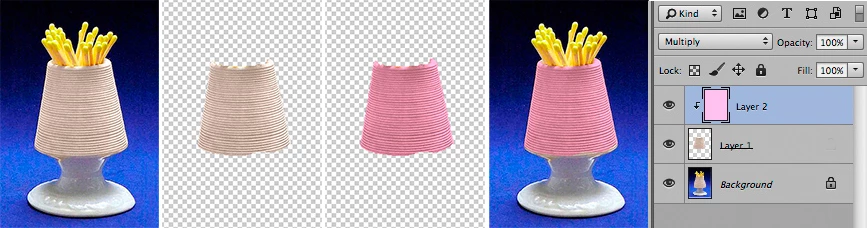 I've got a layer with an object in the middle and outside of that it's transparent. Now I add a layer, fill it with a color and set it to Multiply. What I would like to happen (and expected) is that this color would multiply only the opaque pixels of layer 1 and leave the transparent areas of layer 1 as they are. Instead those transparent areas get filled with that color too.