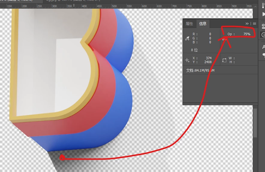 In the beneath example, the shadow part i have noted in red dot have opacity 75%,