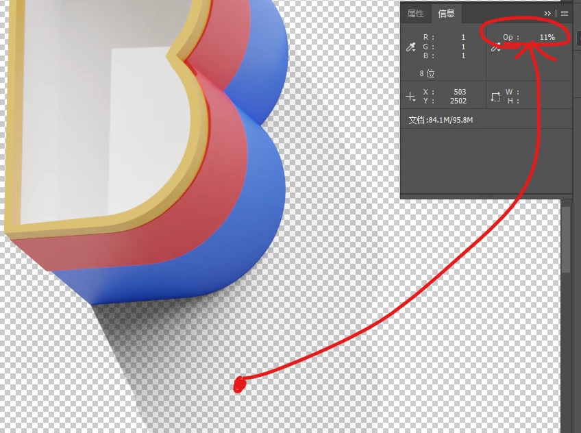 and farther part of shadow has a lower alpha value ,in this case , it is 11%