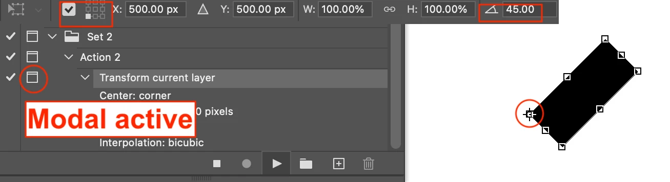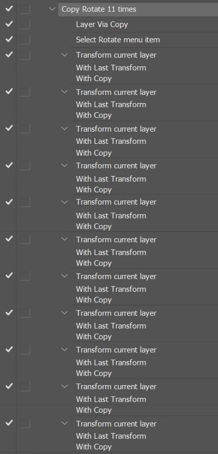 I'd like to be able to create 11 copies of a selected portion of an image, rotated around a single point, and I'd like to choose that single anchor point while running the script. Here is my action, which is run after I choose to select "subject" in the original image: