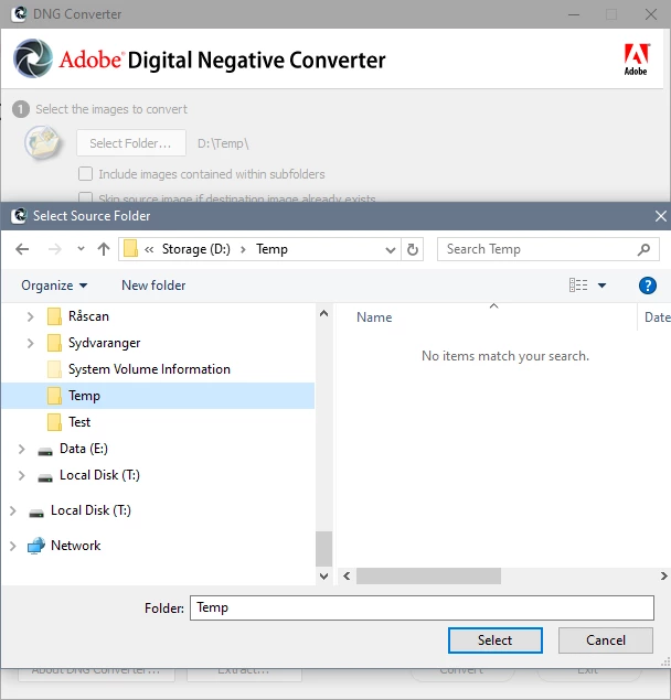 Haven't used my 5d MarkIV for a couple years. Recently went to convert some RAW CR2 files to DNG, but the converter can't see them/isn't recognizing them. Not sure what changed, it used to work fine. I'm using the latest DNG Converter and Windows 10. Please help!