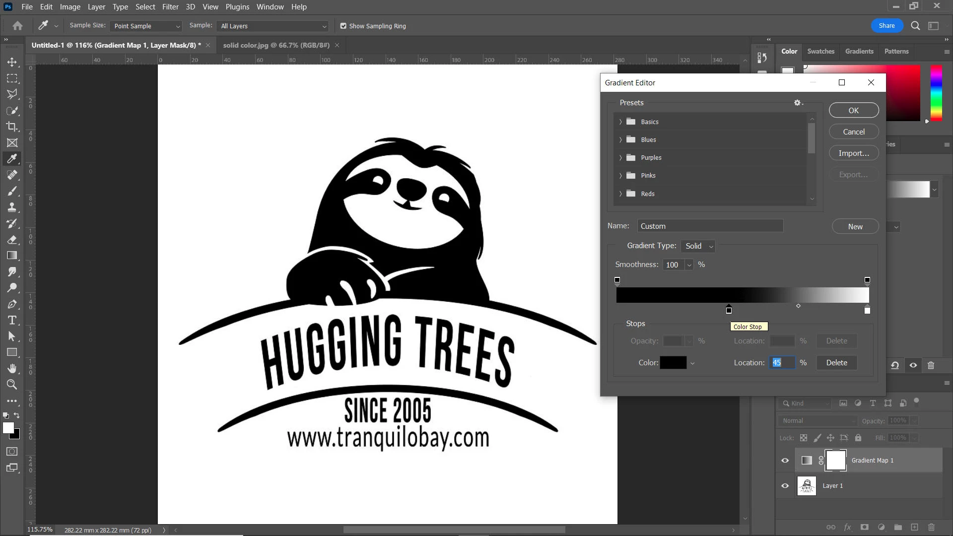 I have a multi-layered RGB image comprised of text layers and artwork. The color throughout is grey (#5d5d5d). I need to export it in black (RGB) so I can print it onto transparency paper. How can I convert all the grey to black?