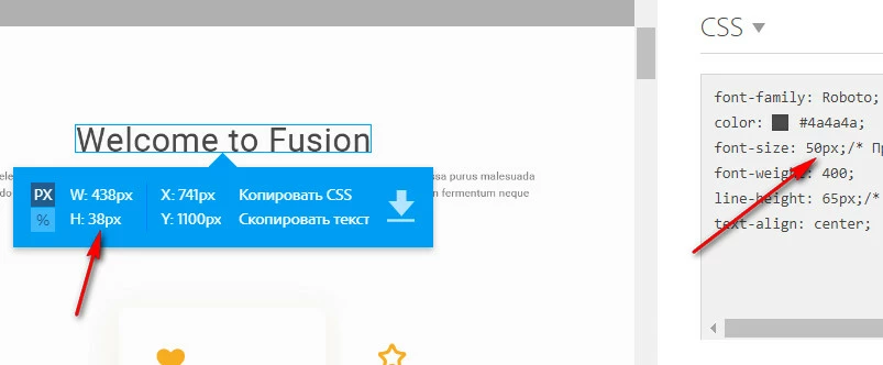CSS = PS - (line-height_1 - font-size_1) / 2 - (line-height_2 - font-size_2) / 2As the font size increases, it becomes clear that this formula is not enough. The actual height of the line (obtained with the selection tool) in Photoshop is even less than the font size!