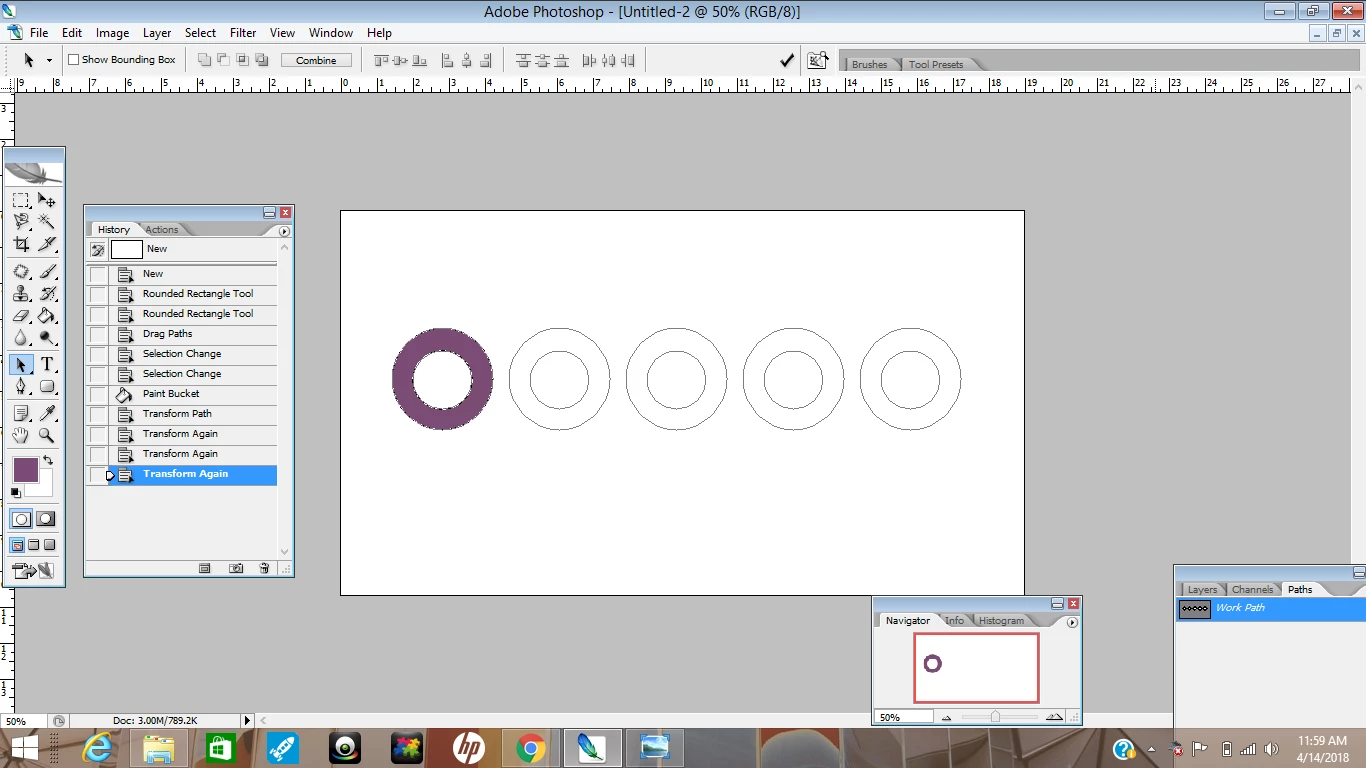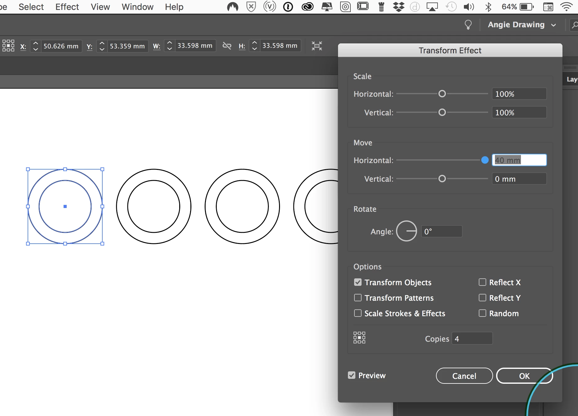 Drawn two circles. Used subtract from selection and the fill the colour. I wanted to make array of paths. Used, ctrl+alt+t. How can i get array of paths along with colour filled. Dont want to fill on each path.