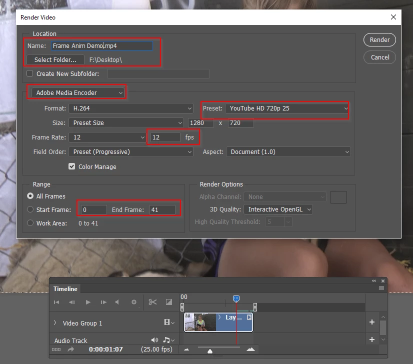Find your MP4 file and test it. If OK, go back to Photoshop and go