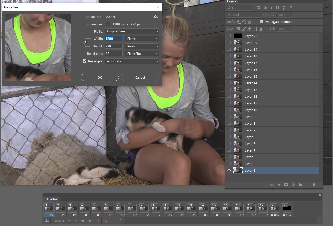 The 720P preset gives you an image size of 1280 x 720 pixels. I have no idea what will work for you, but down size if you need to.