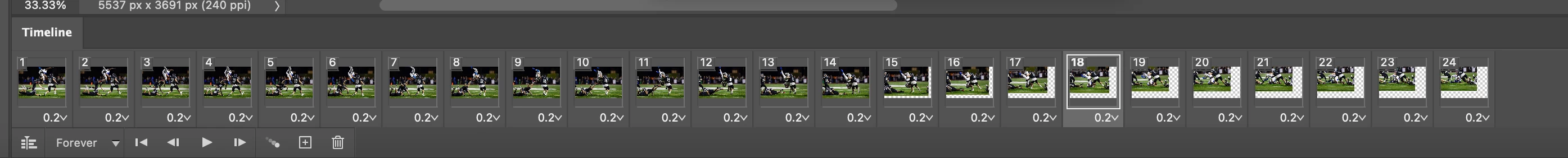 Hi, new to the community and appreciate the help! I'm trying to make a gif with a football sequence of 25 photos. When I crop one photo, it crops them all. Is there a way to crop one photo at a time without changing the entire sequence? Thank you!