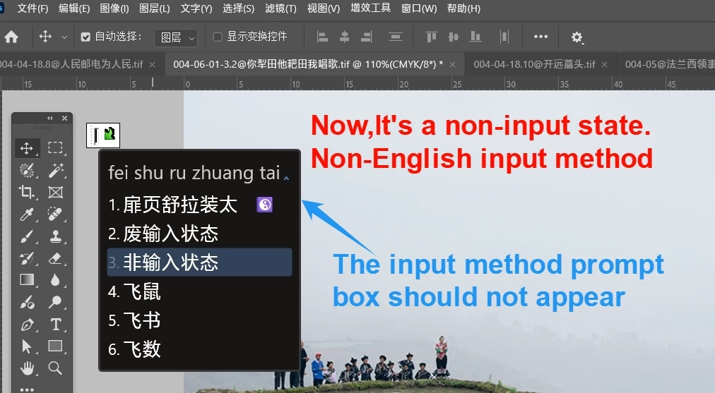 In PS, if the current input method is English, and it is non-input state, you press the key, it will point to the shortcut key.