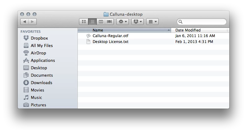 3) This automatically opens FontBook, which is the basic font management software that comes with your Mac. You will then be able to see the font in your installed fonts list, which will make it available for use within Photoshop.