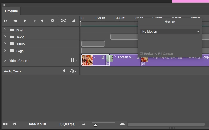 I have clicked the popup options for each clip but it hasn't worked out (when I click it, it only shows the option "motion").