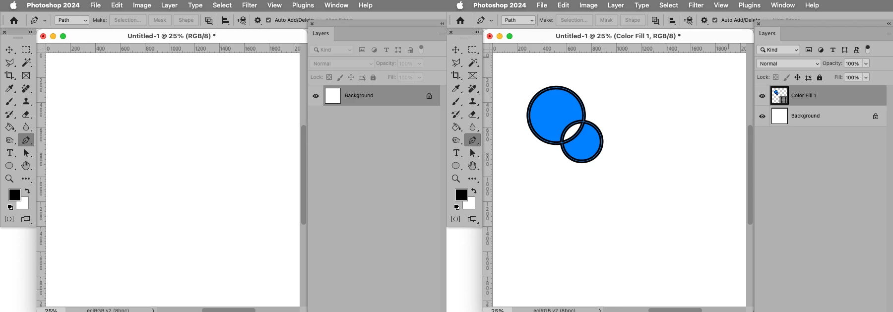 But, when I try to fill the path using the fillPath method, the layer just appears empty.