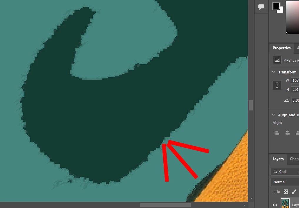 I've used color fill for the area ouside, how do i make the the edges sharper without these issues?