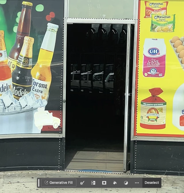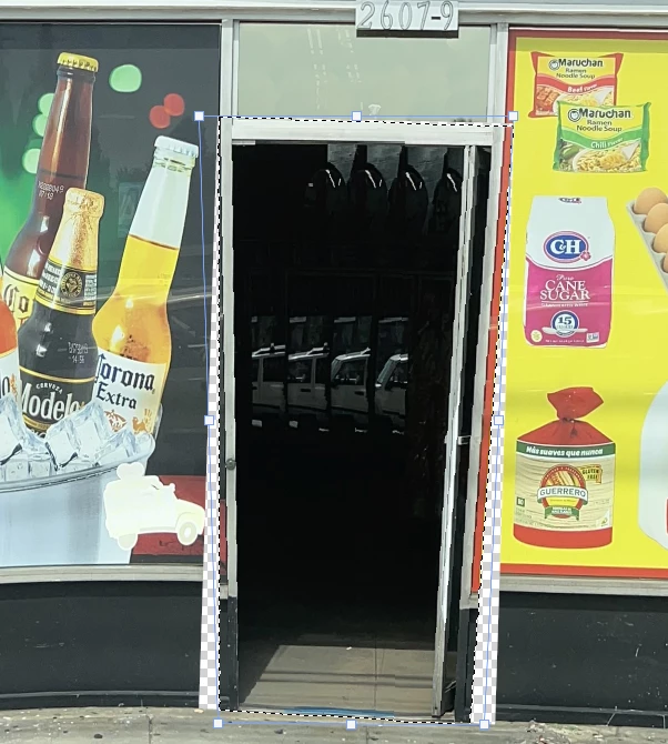 You are working on just the one layer, and that's not how Photoshop works. Slect the door and copy it to a new layer. Make it a Smart Object, and then Free Transform it to fit.
