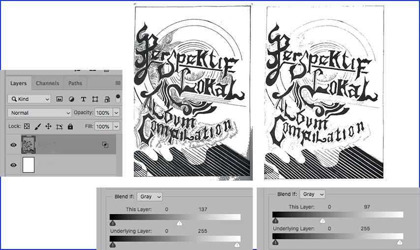 2. Double click on the object layer to bring up Layer Style. In the Blend if section move the top right slider to about 137.