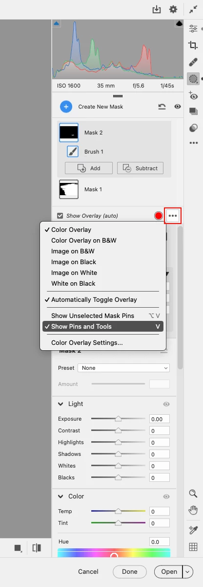 You can uncheck Show Pins and Tools in the Masking panel menu under the four little dots to the right of where it says