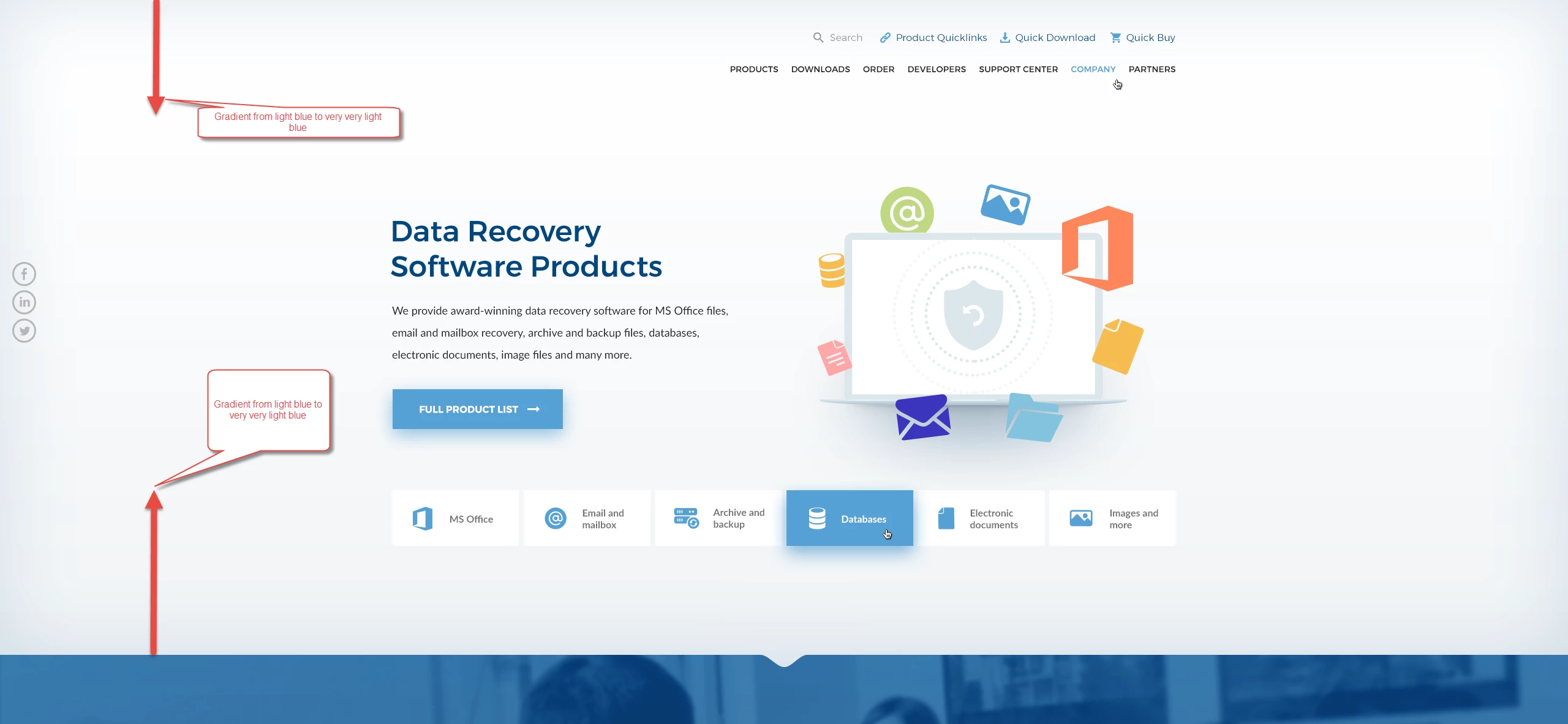 In the upper section, the background is using a very light blue. And I can notice the color in the border is deeper than those in the center. I ask the designer how to implement such a feature, but it seems that the designer cannot understand me very well. After several communications back and forth, I give up and decide to ask on the PS forum.