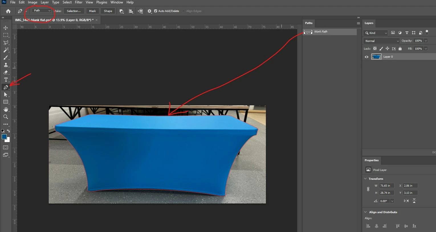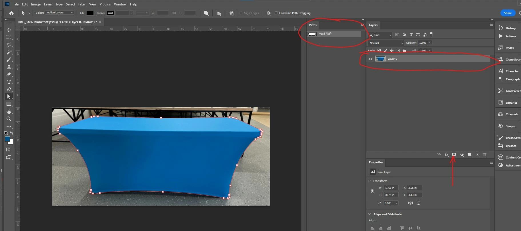 Step 3: With path selected and layer selected, ctrl/command+click on Layer mask icon