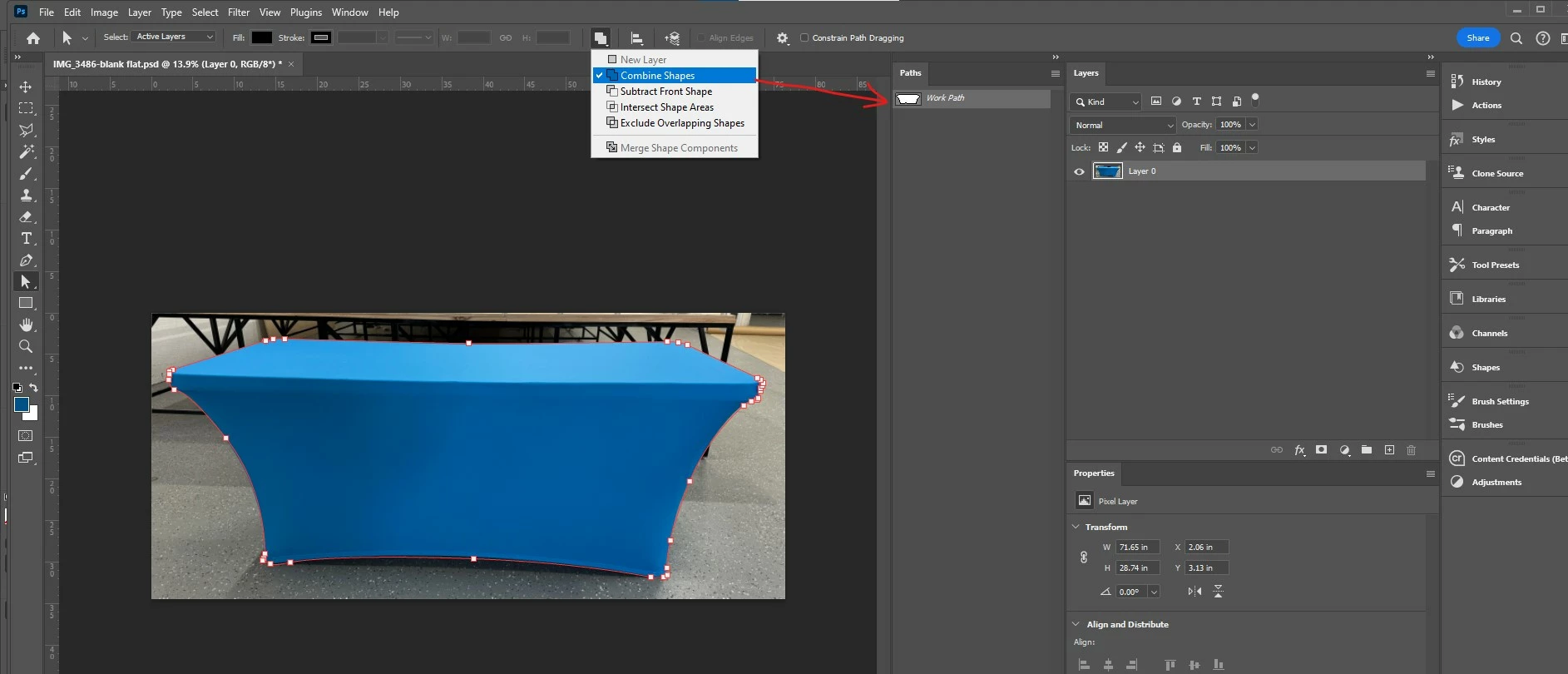 Notice that the path icon in the step 1 image shows white on the OUTSIDE of the table. Change the Path Operations dropdown to Combine Shapes.