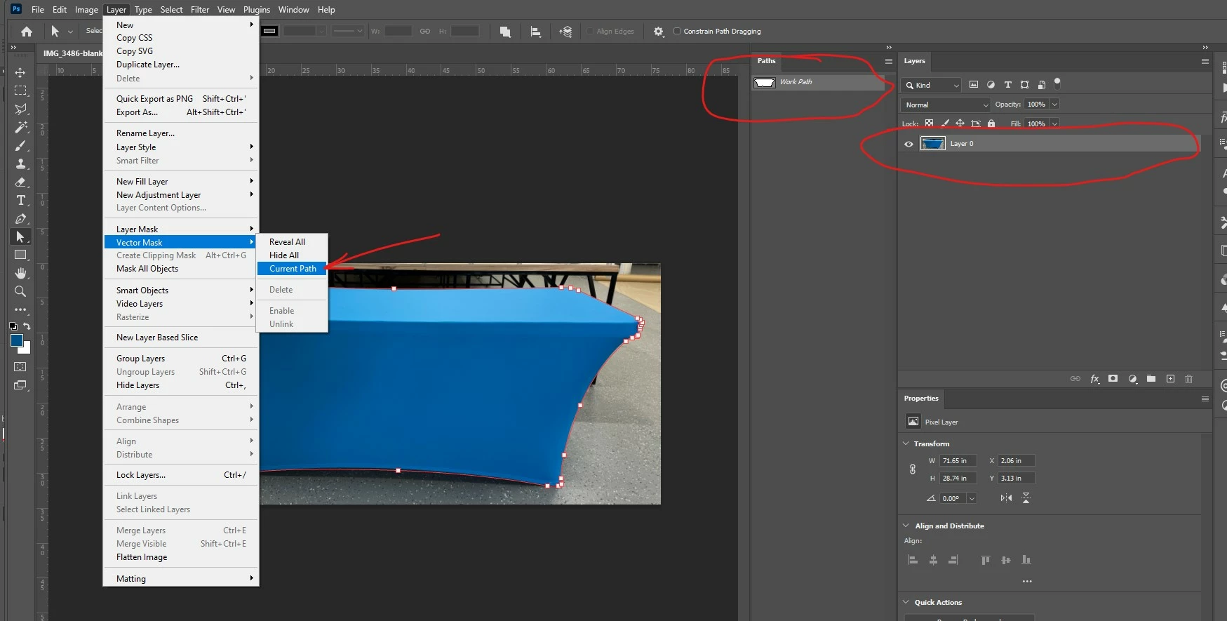 Final Result - A new Vector Mask has been created on the Layer and also in the Path List