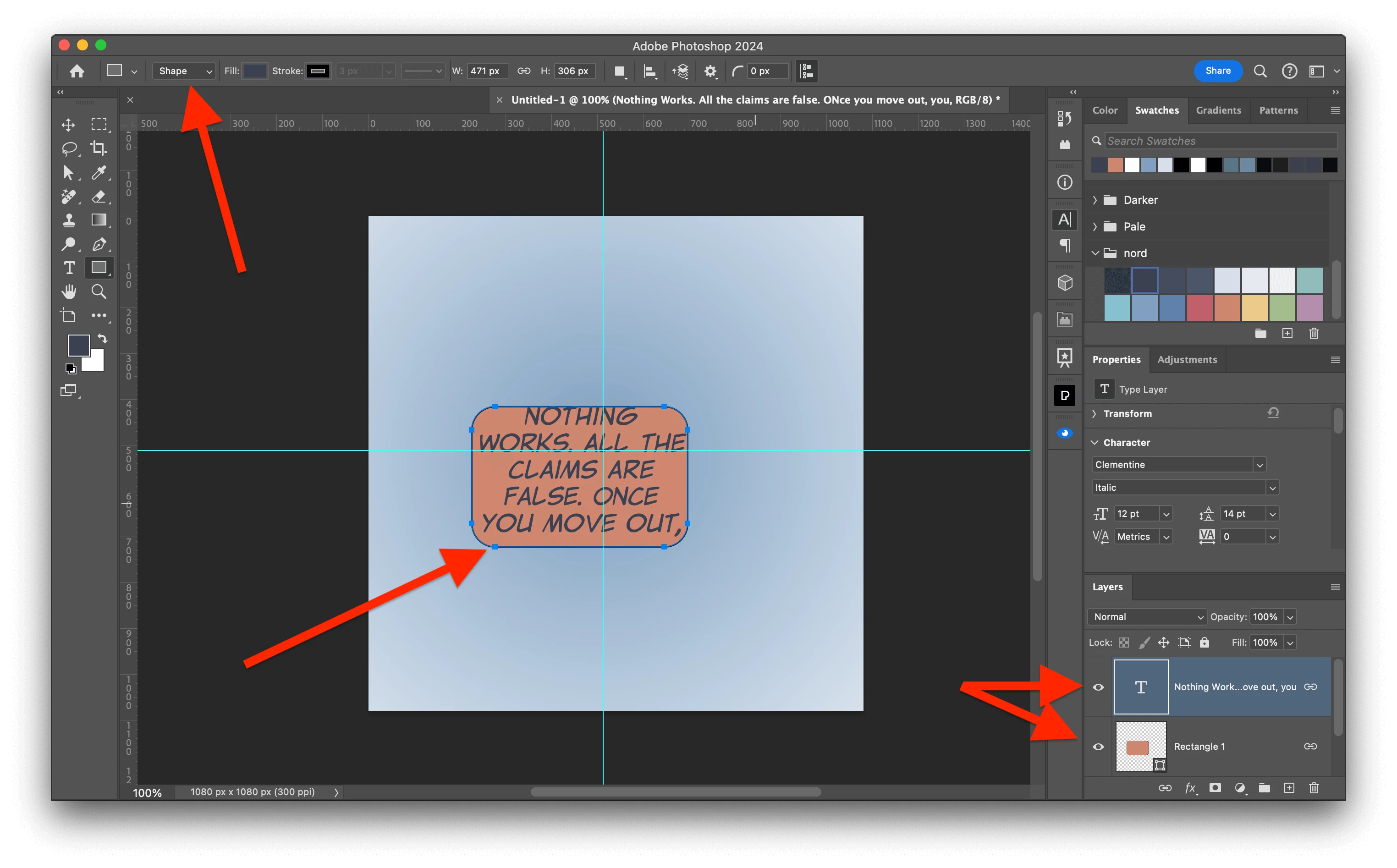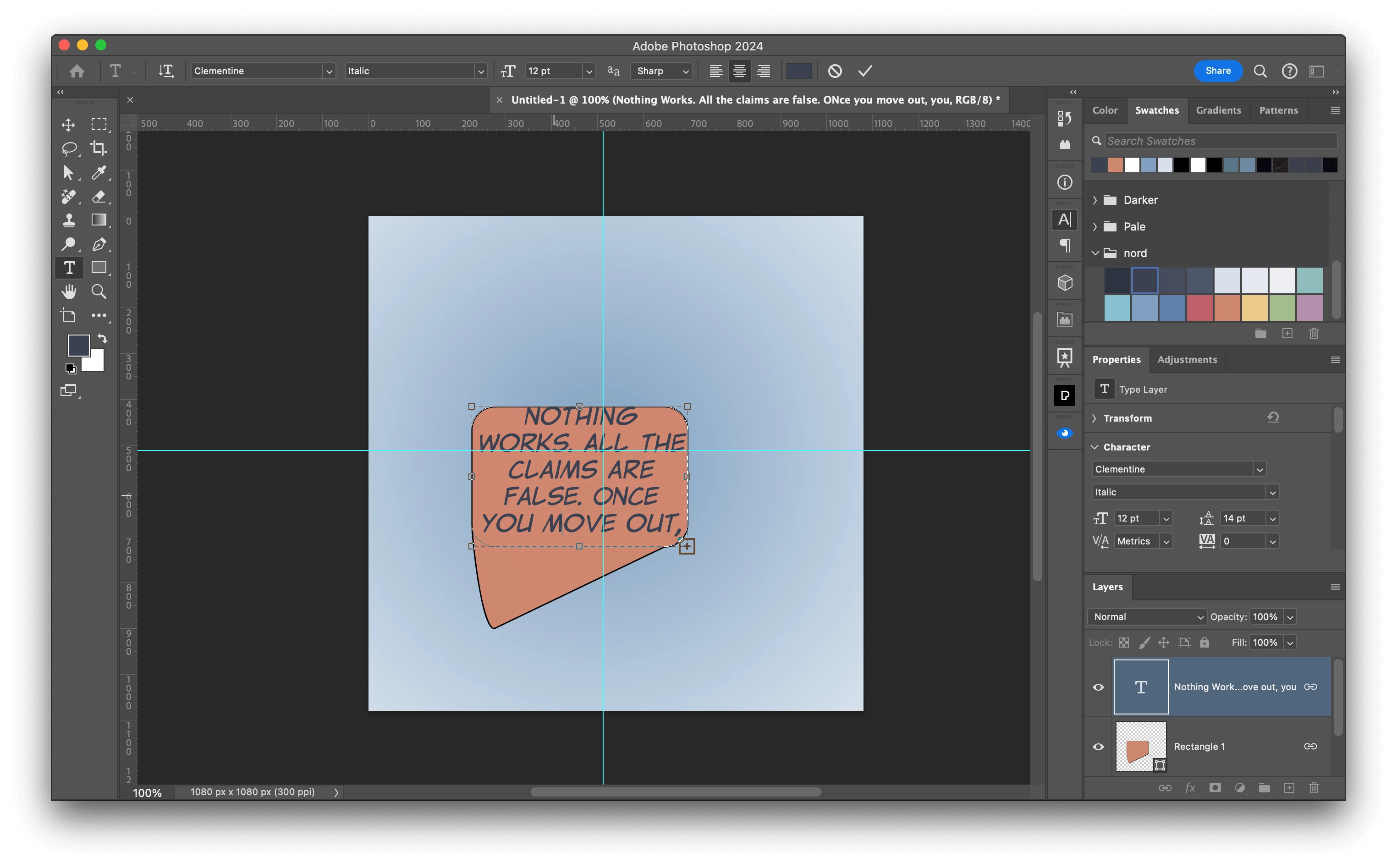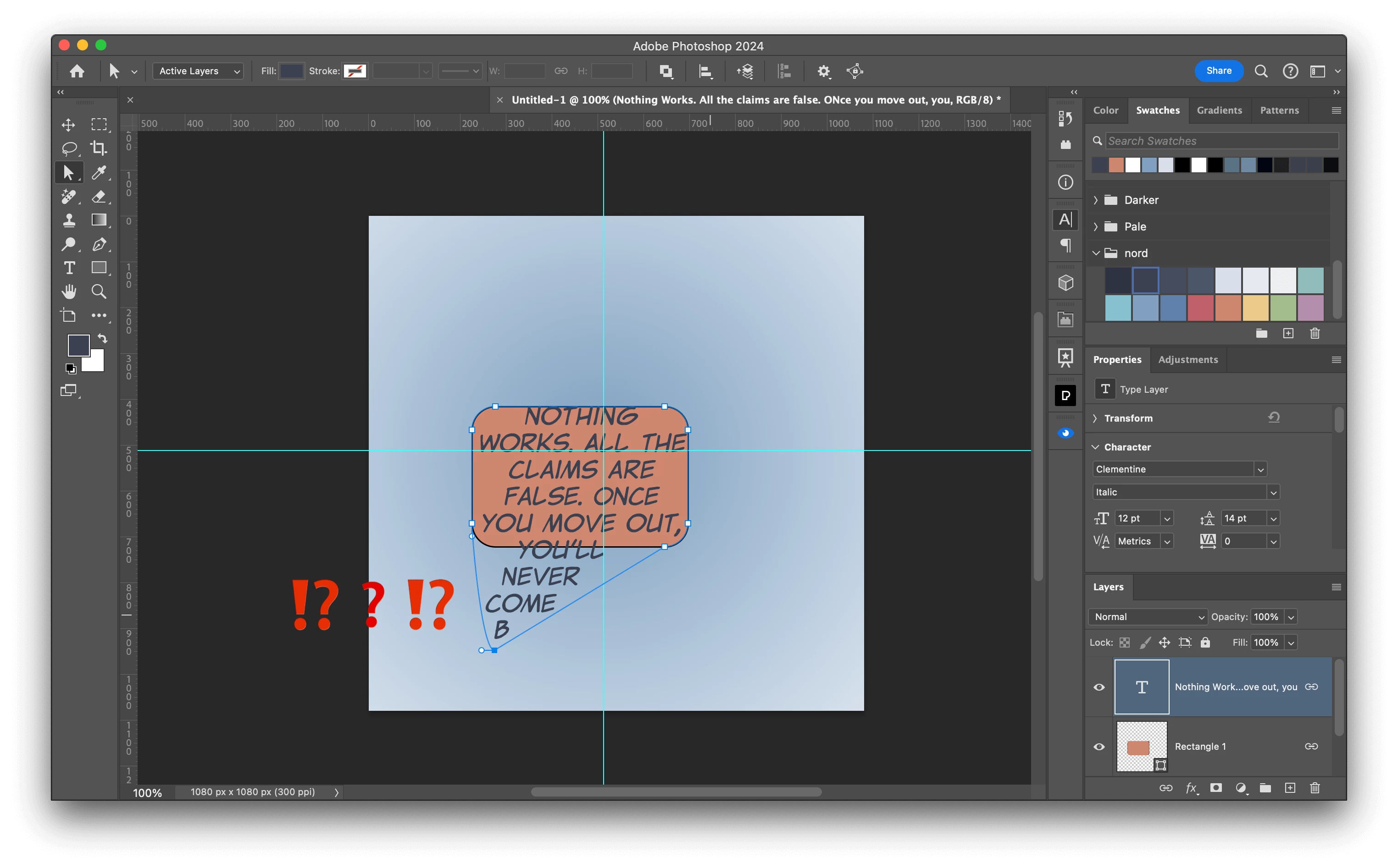 That said — I think I'll do it old-school — separate layers for balloons and text, and adjust everything manually 😞