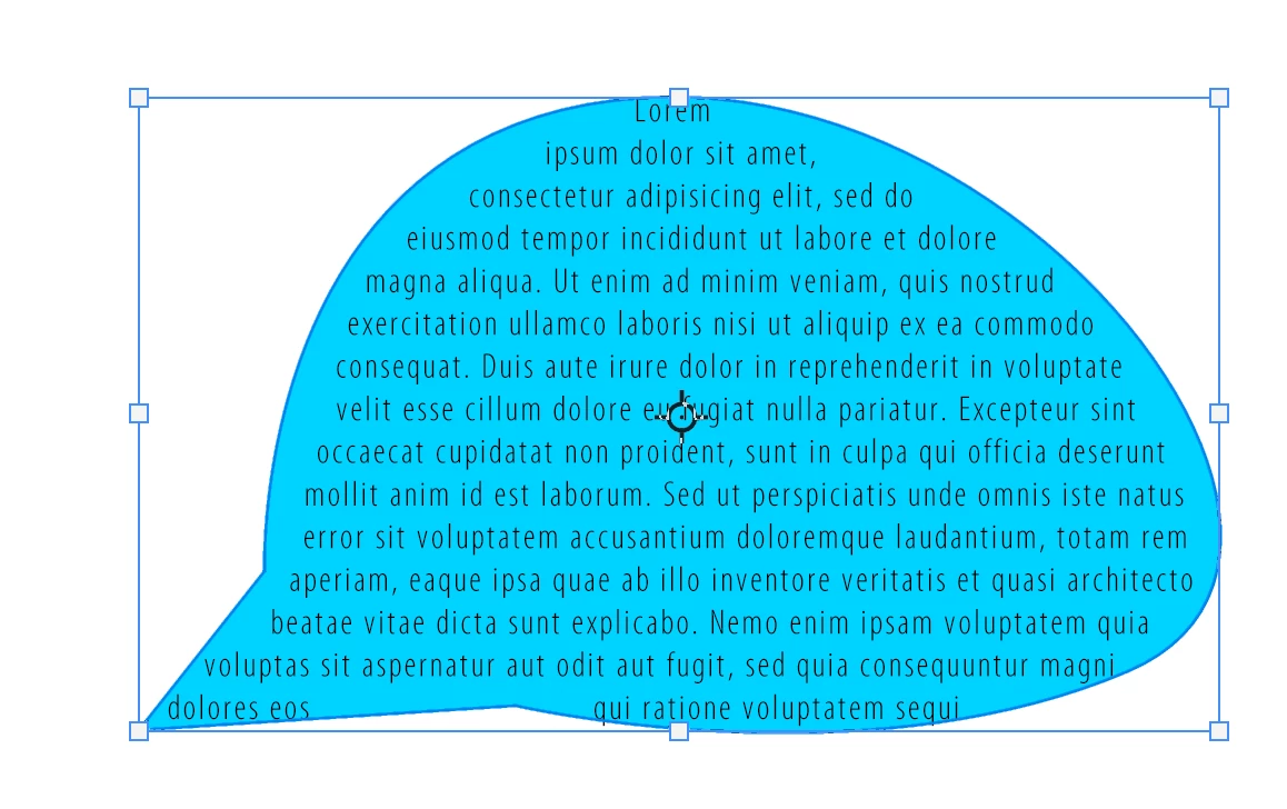 ... but the text doesn't flow! In fact, on the image above, I have switched back to the text layer, and I can confirm: its shape wasn't affected in the least — if you zoom in closely, you can see that the text is still conforming to the previously selected shape. In other words: it's not as if the text was not correctly shaped, or only approximately shaped. No, it has acquired the complexity of the original shape (it's easy to note because there are these extra anchor points — the more complex the shape is, the more obvious this will be).