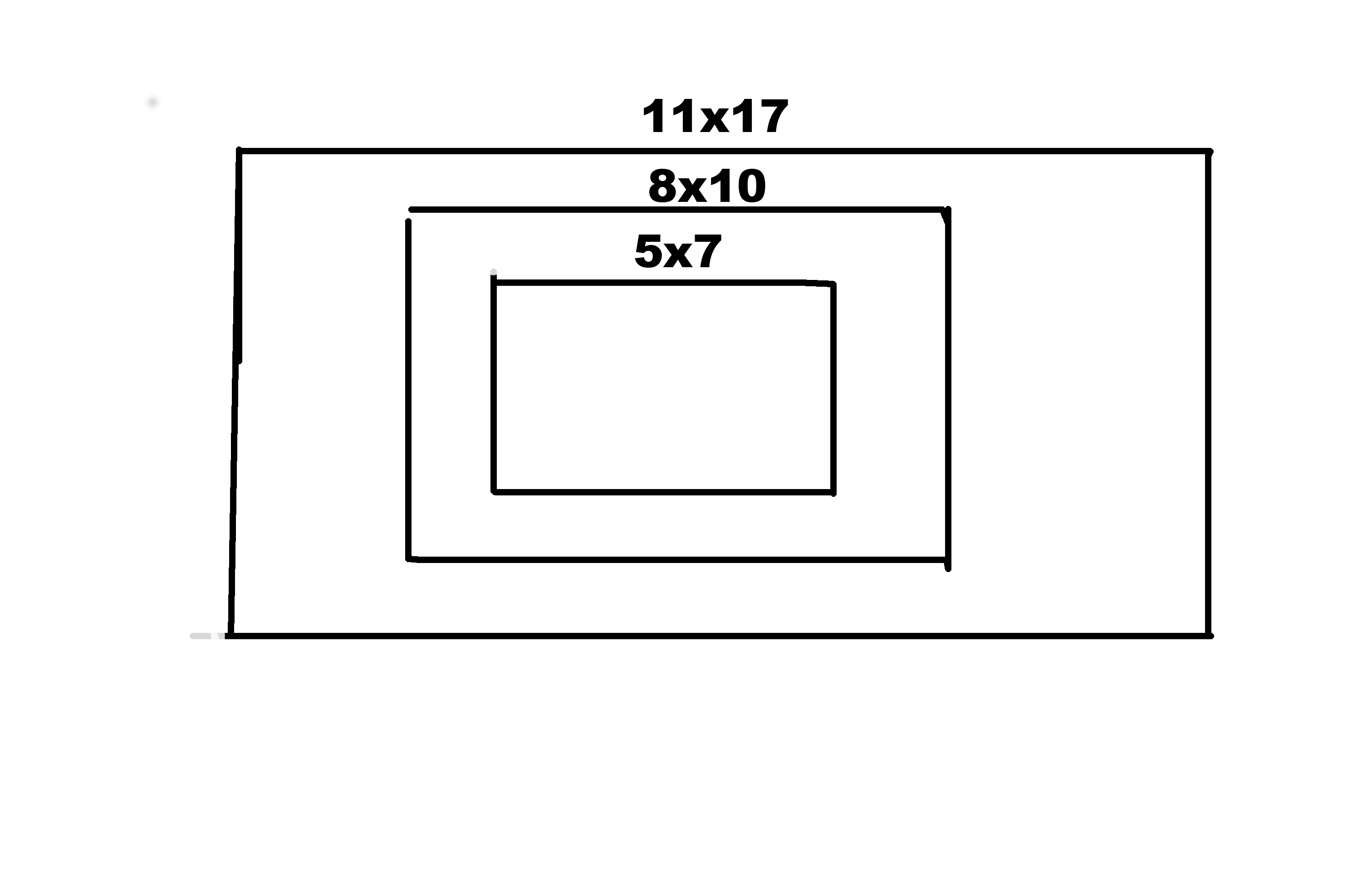 Is there a way to make a layer to scale in Photoshop that has the dimensions for specific print sizes? For example, on one layer, there would be bounding boxes for 5x7, 8x10, and 11x17 paper, or how will a 16:9 crop fit on an 11X17 piece of paper? Then, I could add an image via a new layer and visually see how the image would fit into the various specific sizes. Sort of like the image I have attached?