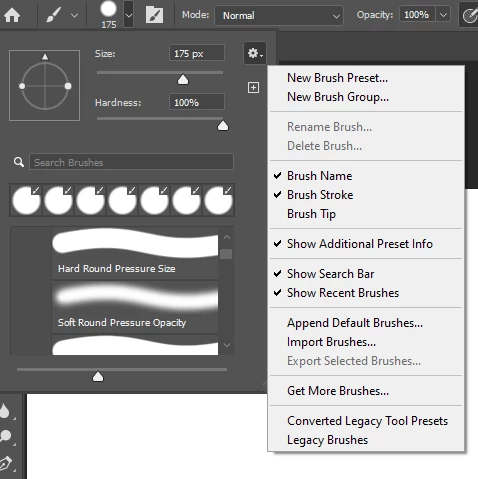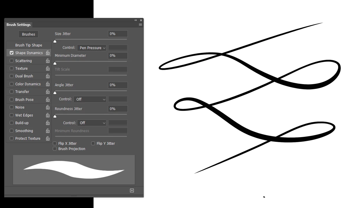 How do I make a brush stroke that tapers to a slimmer width at each end? I would like to apply it to a vector path in Photoshop. I do NOT have a pressure-sensitive tablet. Seems to me that I used to be able to make a brush stroke that tapered off on both ends of the path (a few versions/years ago). I cannot figure out how to do it with PS CC 2019.