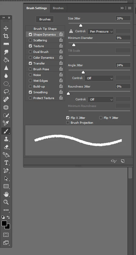 how can i make this brush taper off at the ends as i apply pen pressure ? (using XP pen drawing tablet)