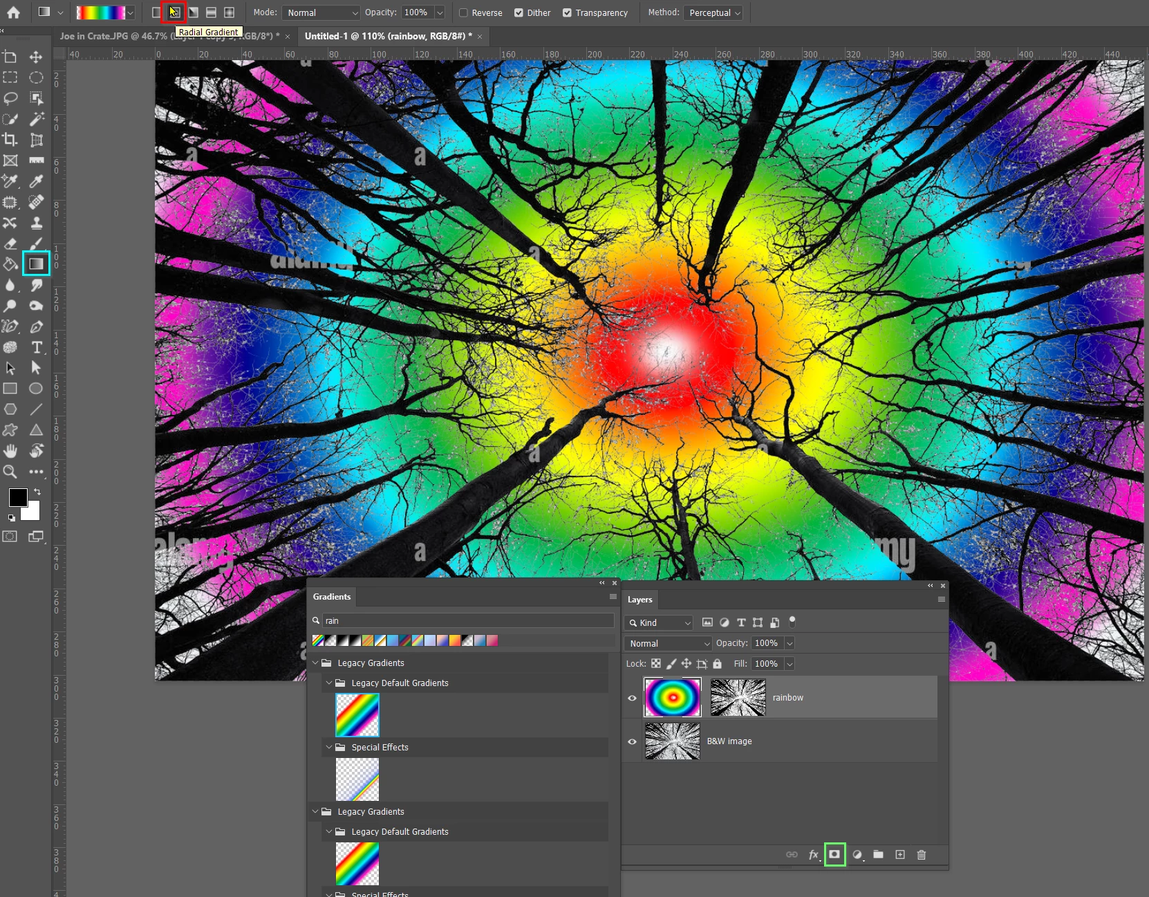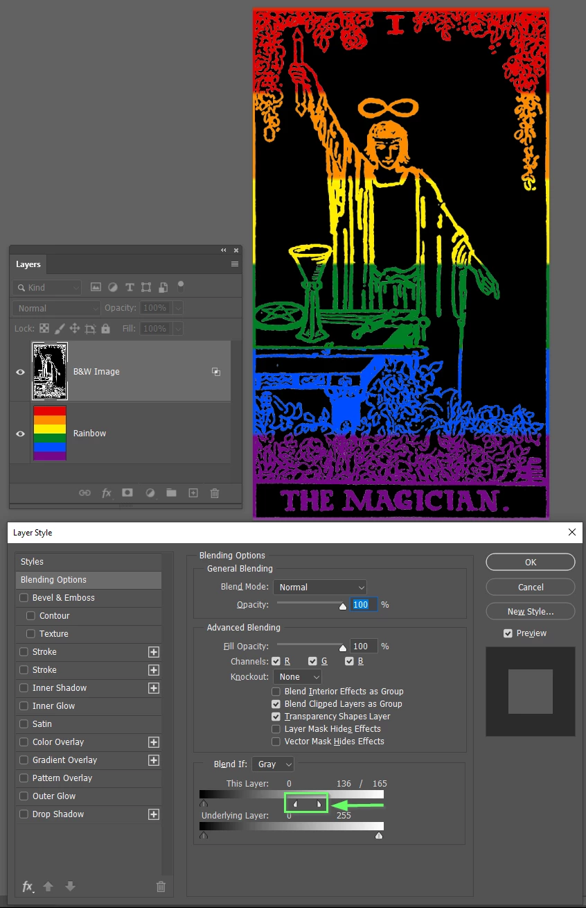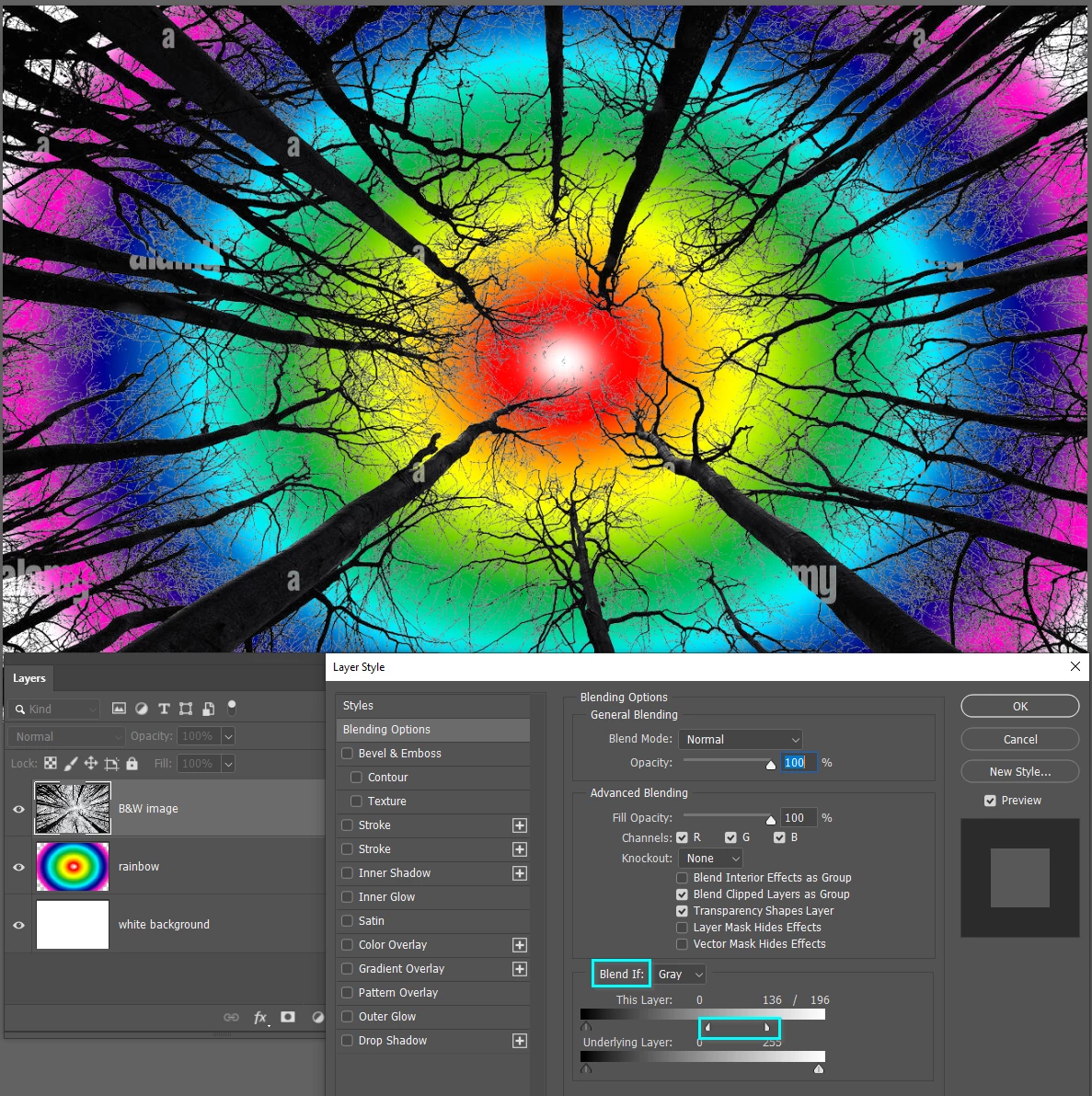 I have several images that are all black and white; I'm wanting to turn the entire white portion of each of the images to have rainbow colors stack on top of each other like th LGBT rainbow flag and get rid of the white entirely (while keeping the black potions of the images). Any help would be tremendously appreciated!