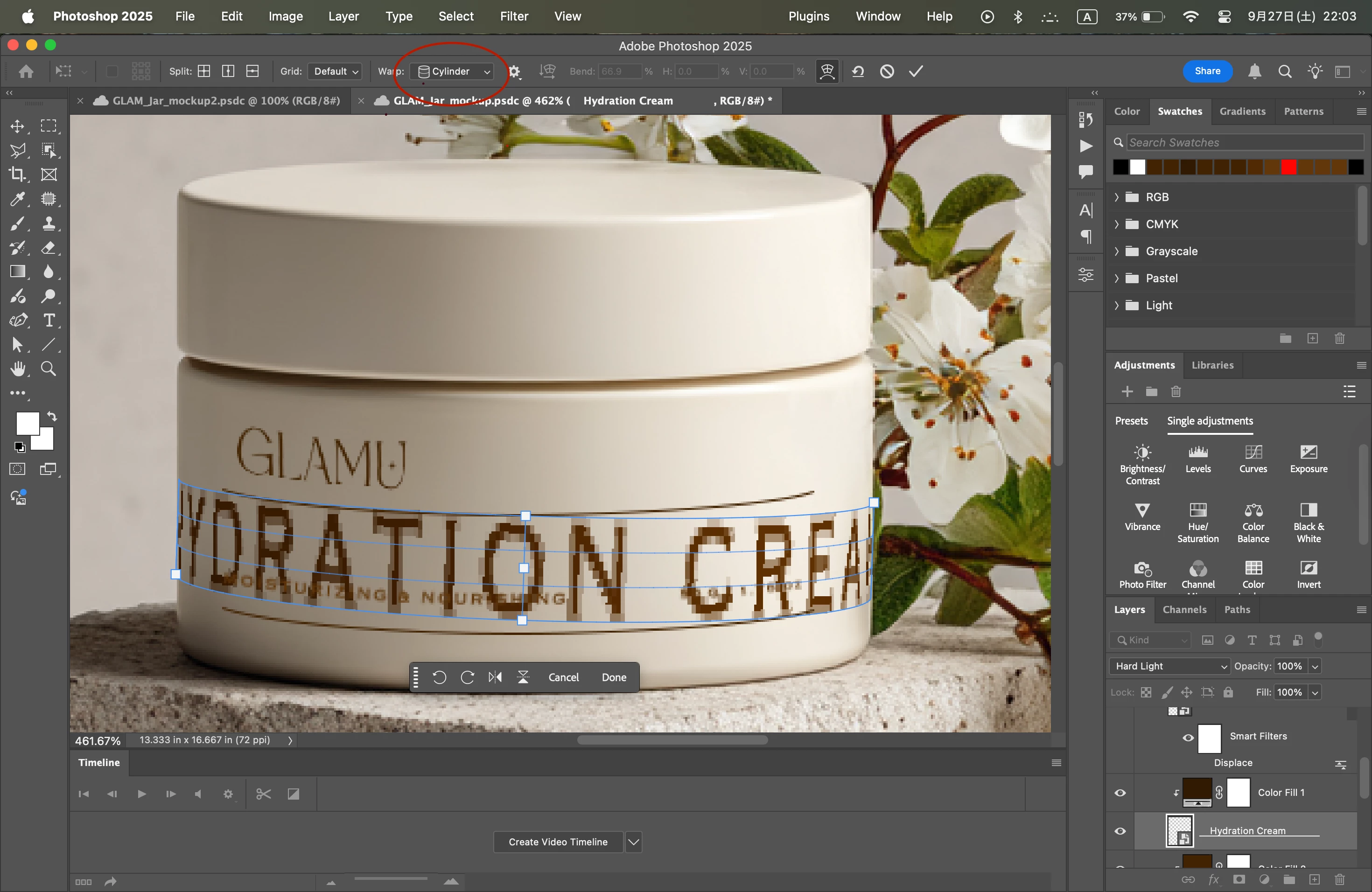 How to make logo and text look like it’s printed on a curved jar in Photoshop