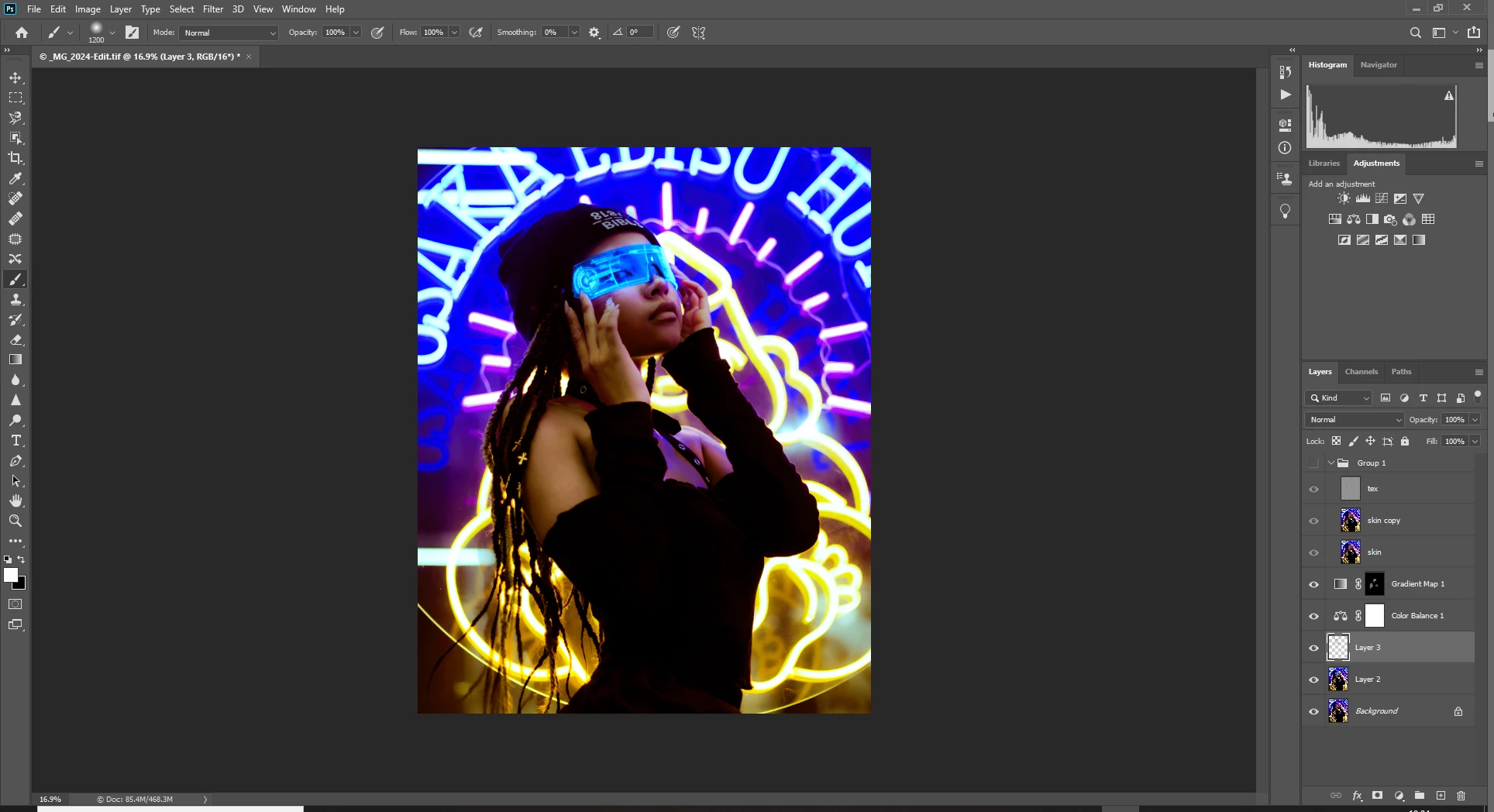The adjustment layers seem to work but the layer 3 won't show the skin adjustments I made in group 1.