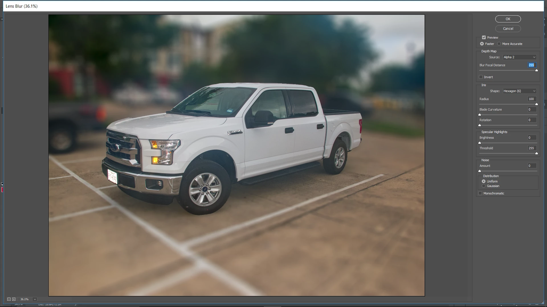 I'm using Quick Mask with the paint brush (very soft edge - 0 ) and masking my car in the pic linked below. I want to blur the background, however with the quick mask option to paint the car, the edges of the car and where that changes to background trees doesn't look very good. I'm not sure if I need to use a different technique to select the car more precisely on the edges so that the end result doesn't look so bad?