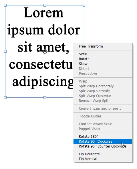 You can also enter 90 degrees in the Option bar and the Properties panel.