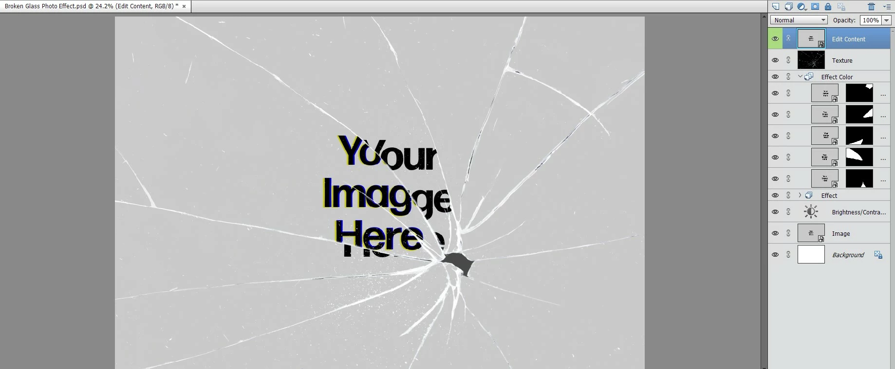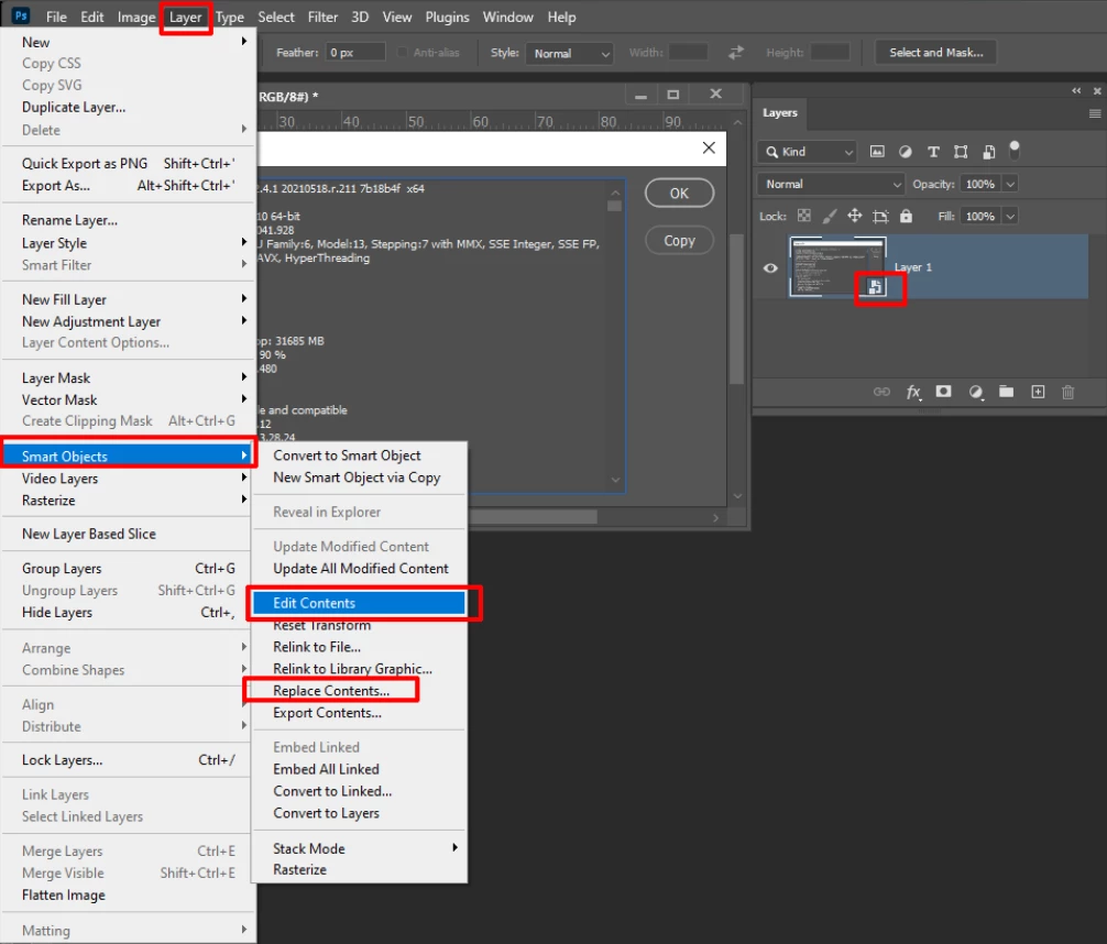 Hi - I am trying to use a Smart Layer to add an effect to a picture.  I need to place my desired photo on the layer that is marked with green on the tab but I can't figure out how to do that.  I have tried Edit, Select all and Edit Paste (from one file to the other).  I have also tried File Place.  Both of these result in the creation of a totally new layer rather than the photo being placed on the desired layer (I did click on the layer before taking the above steps).  I have included a screen shot.  Any help would be greatly appreciated!  Thanks!