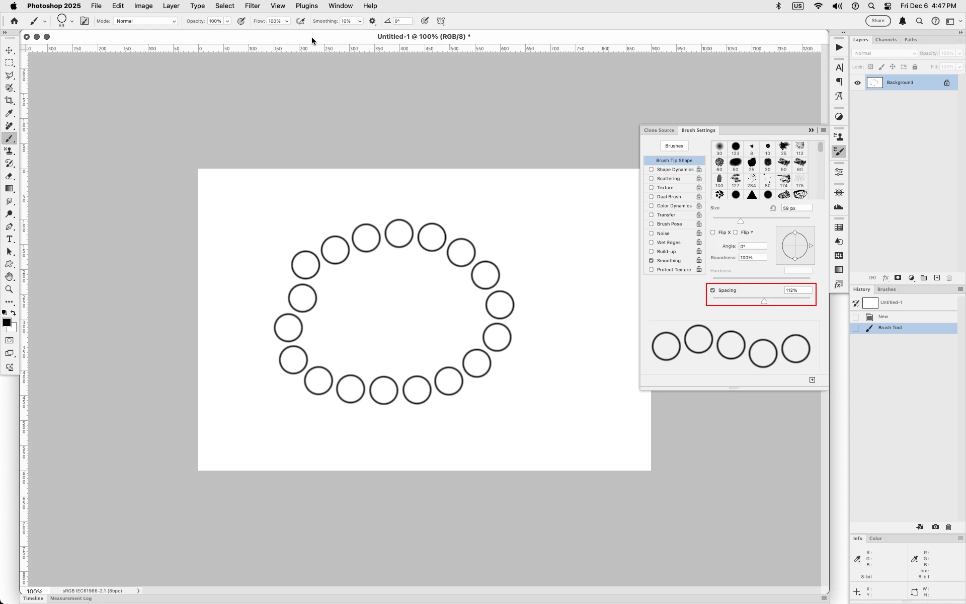 -the brush cant overlap itself, even empty spaces. To make it more clear I have added the following screenshot