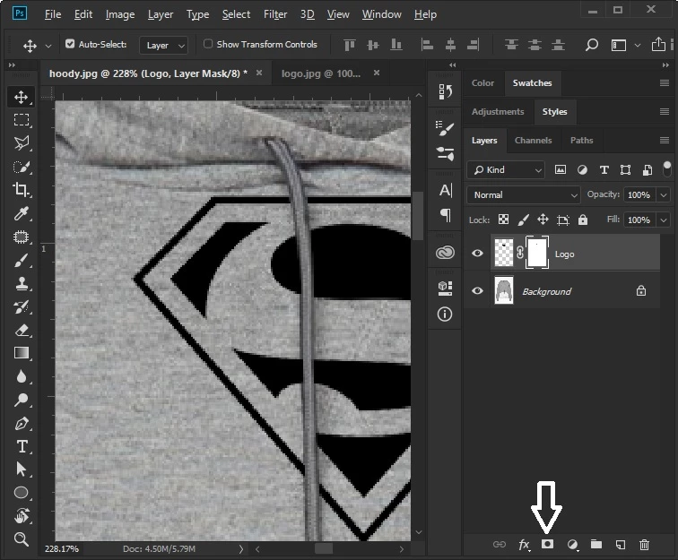 I basically have a logo design (png) and would simply like to put the image on to a picture (jpeg) of a hooded top, BUT would like the cords of the hooded top to be onto of the logo, if thats makes sense? I can put the image on the top no problem, but cant figure out how to layer it to be under the cords.