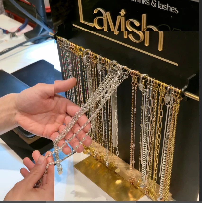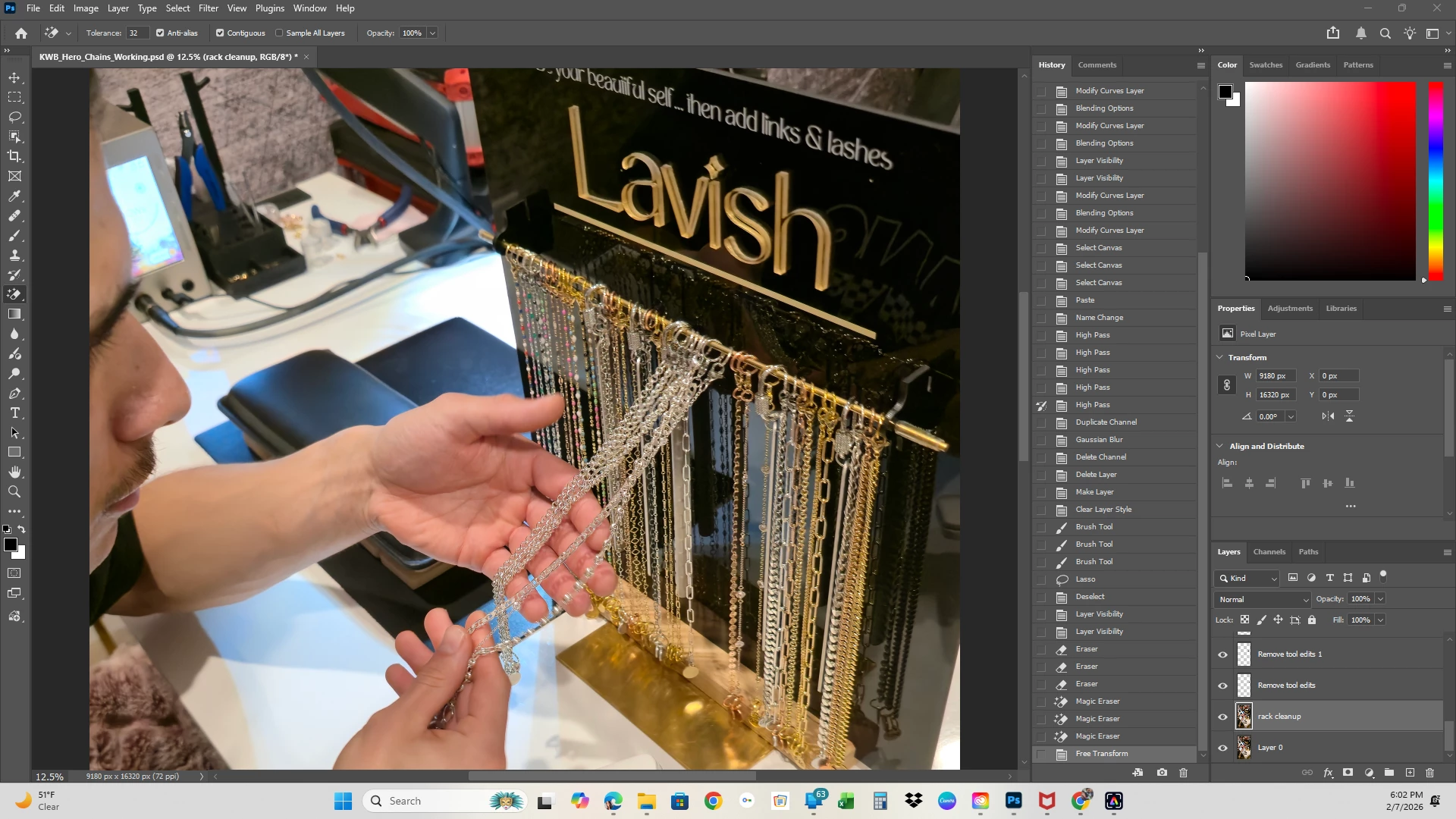 I’m working in Photoshop on a product photo that includes a high-gloss black acrylic board with metal chains and gold elements hanging in front of it. The problem is that the specular glare on the acrylic overlaps and intersects with the chains, and any attempt to select the board also selects parts of the chain.