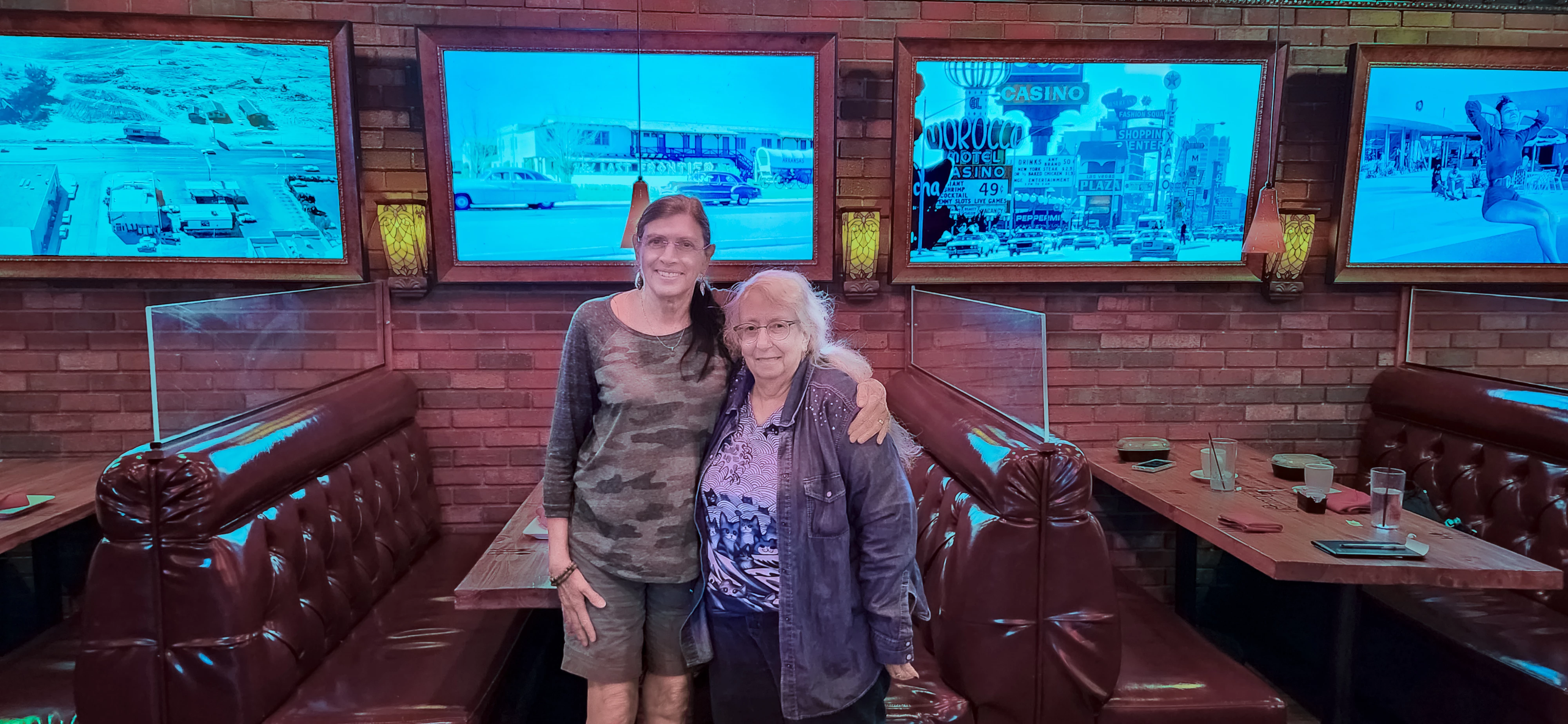 I had lunch the other day with a friend I hadn't seen in over 10 years. The waitress was kind enough to take photos of the two of us. However when I finally looked at the photos the red lighting makes us hard to see.