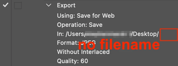 I've added some action scripts from a co-worker, but my adobe suite has added an extra step to the Export action "custom file name" .