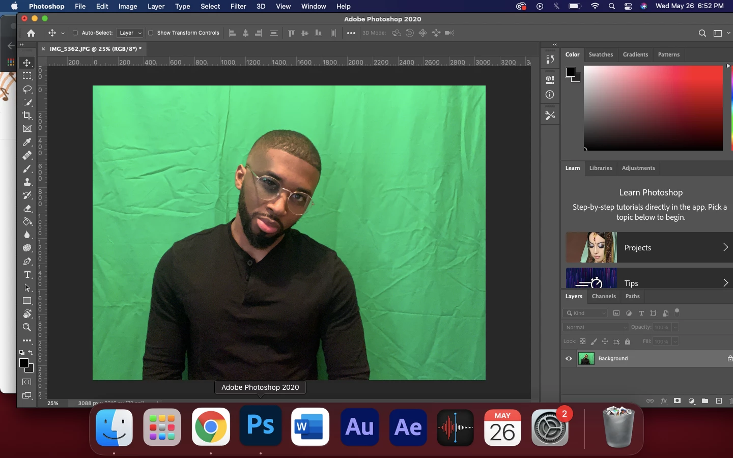 Side note:In the future, I suggest that you place the green background further from the subject to avoid any green spill affecting the flesh tone.