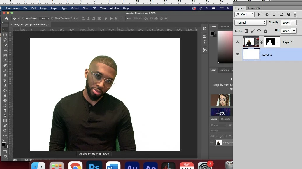 To obtain the result you want without brushwork, you can use Lab Color to create a channel mask and then link it to your susbject image after placing a white Layer below the image layer.