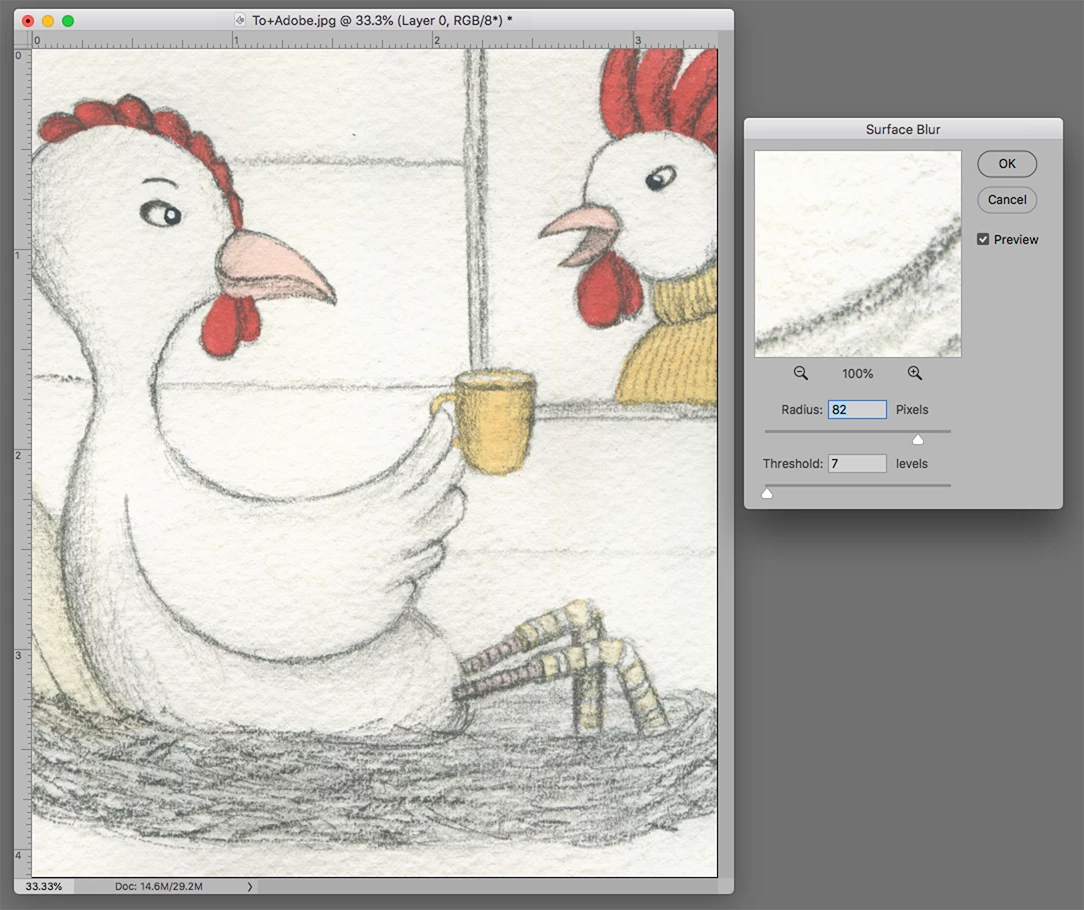 How to remove watercolour paper texture from scanned image in Photoshop CC?