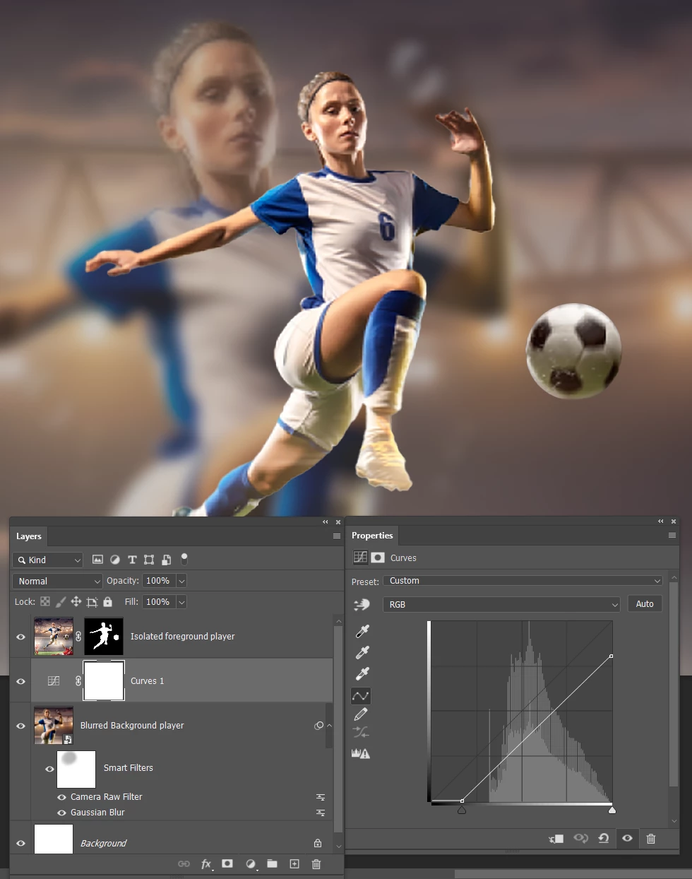 Blur the background layer — I used Gaussian Blur value 10.0