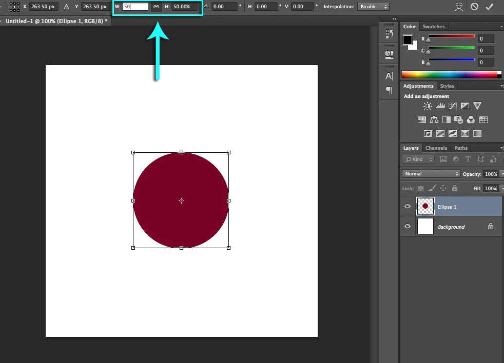 Say I have an image that is 100x100 pixles. And I want to take one of the layers and resize it to 50% of the image size, so that it is 50 pixles. How can I accomplish that?