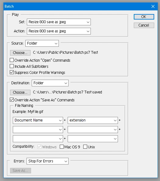 9. Go to File>Automate>Batch to use the action to resize a folder of images.
