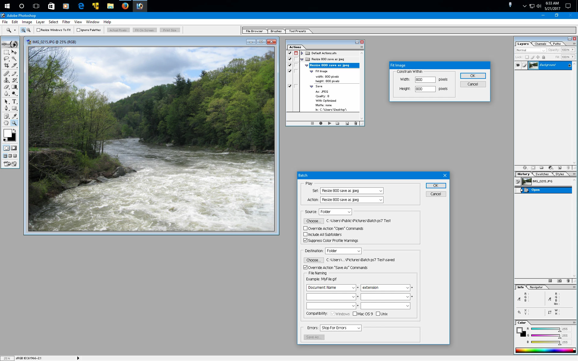5. Go to File>Automate>Fit Image and enter 800 in both fields and click OK