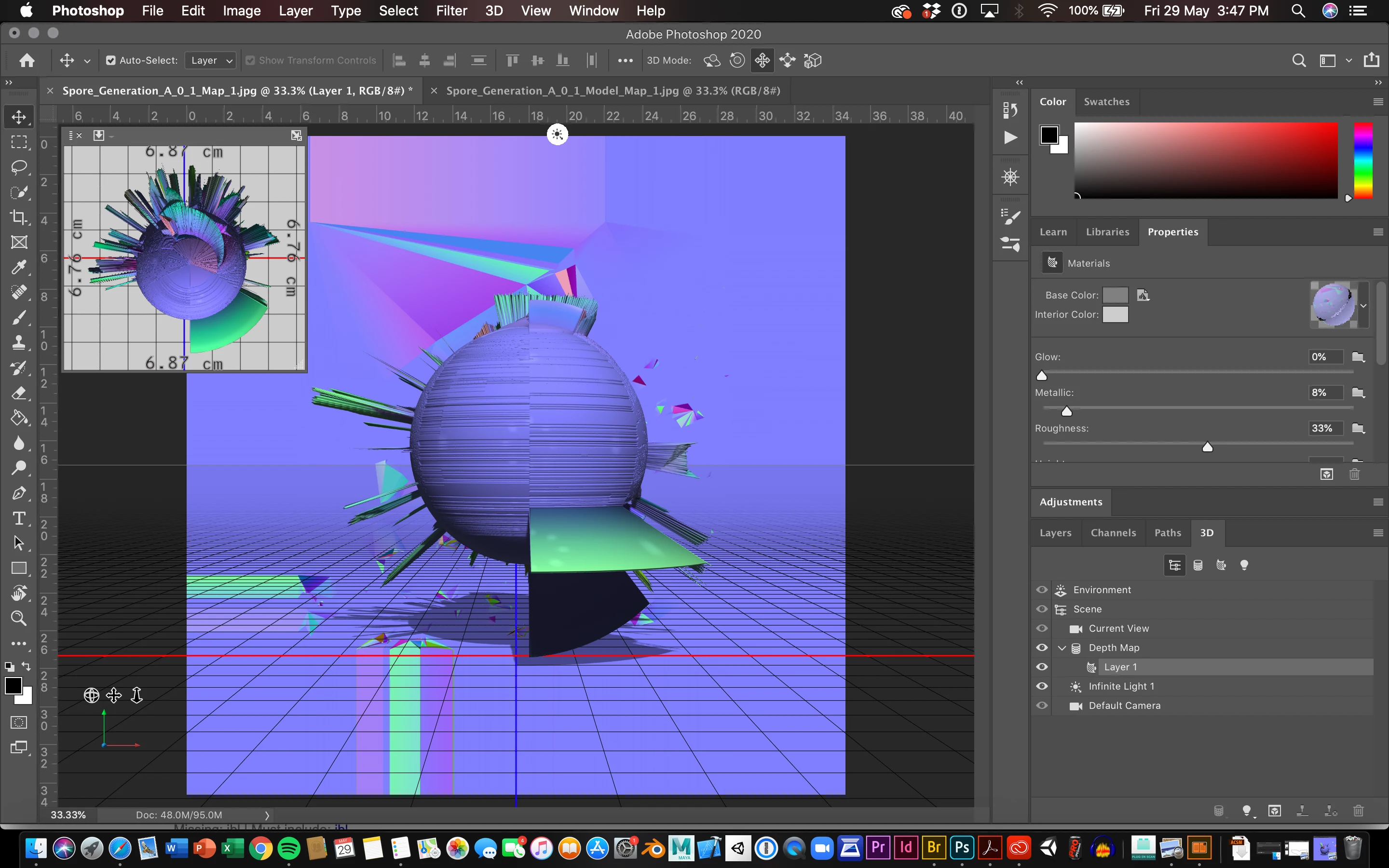 I use Photoshop's 3D mesh extrusions function to generate fractal 3D models, I recently updated to 2020 version 21.1.3 and I am finding that extrusions from the same image now appear vastly different in terms of texture and lighting.