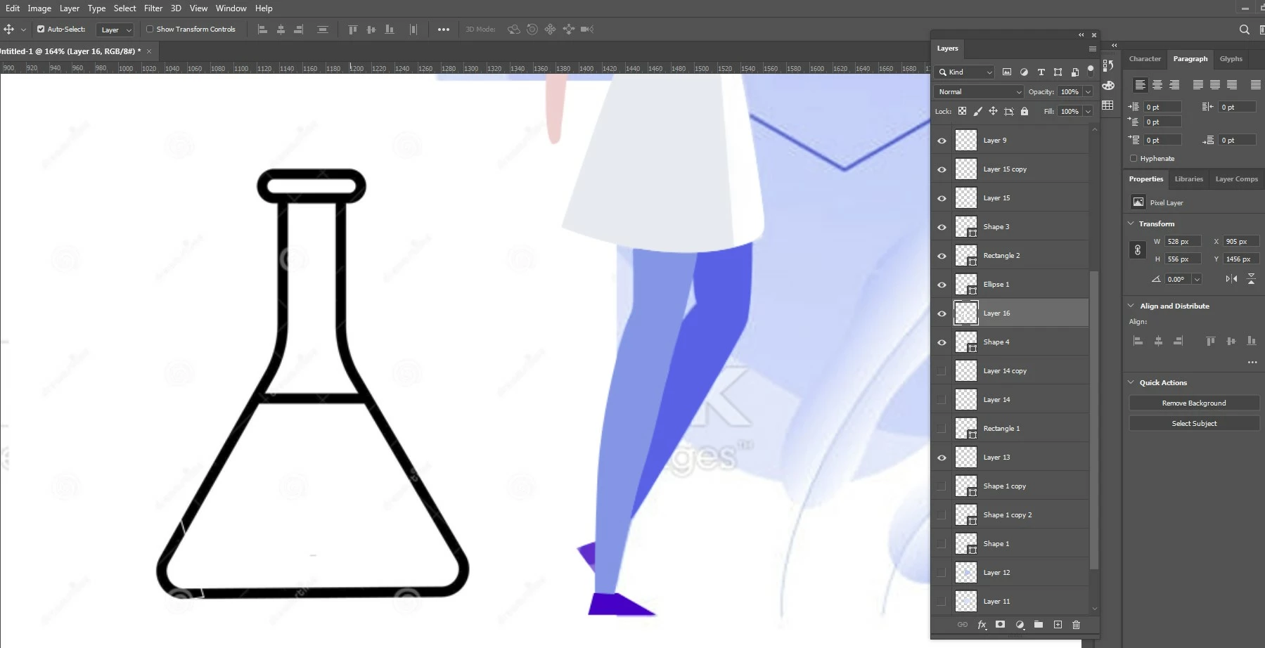 I am trying to draw a lab flask in photoshop. But I failed to have a round corner. I can draw it manually, with pentool, which I dnt want to.