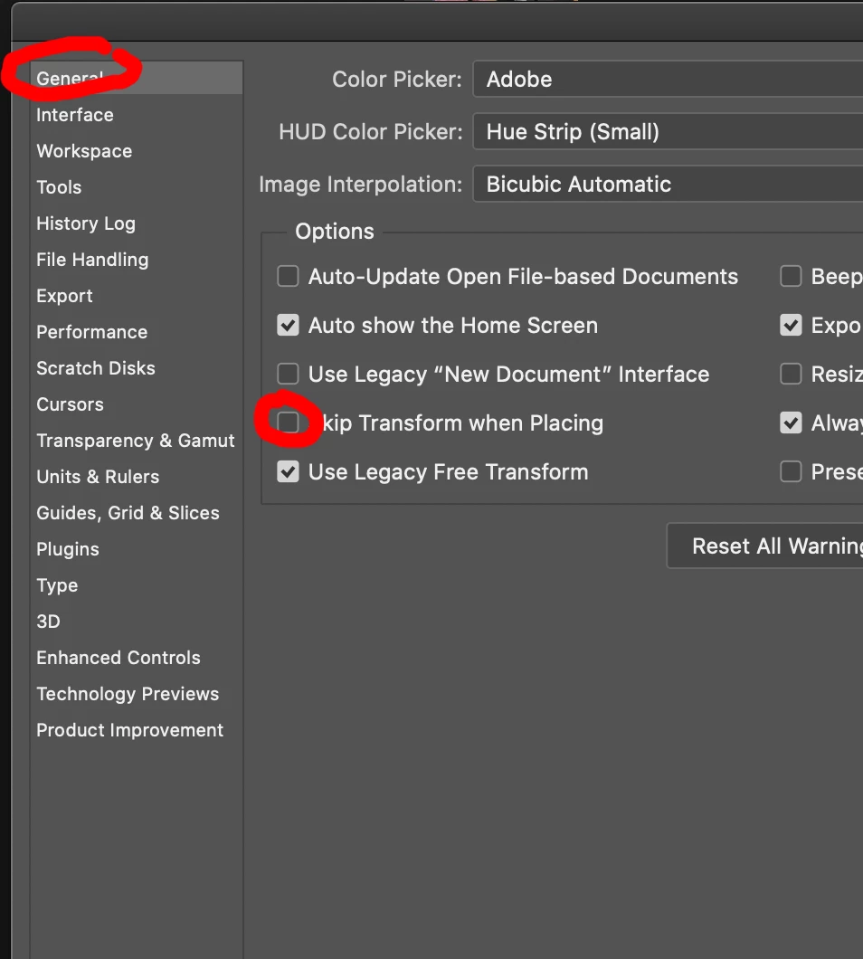 How to set photoshop 2020 to free transform images by default?
