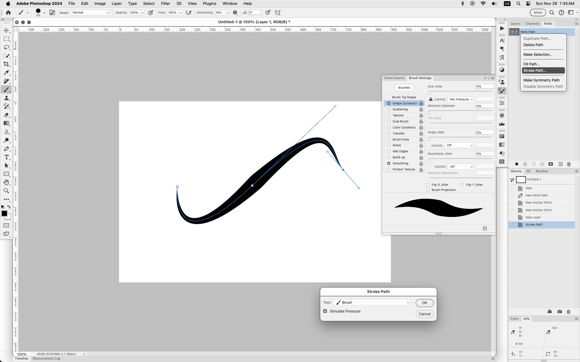 I created a regular curved line and would like to adjust its thickness throughout. It should start as a bit thin, then transition into being twice as think and, towards the end, it needs to get thinner again. Is there an easy way to do this without actually drawing the line on a pressure sensitive tablet? (don't have one).